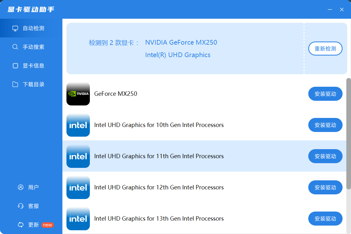 自动快速扫描系统显卡驱动型号,精准定位下载安装!